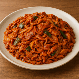 - Extra smoky: toast 1 tsp gochugaru briefly in oil first to make a quick chili oil, then add pork.